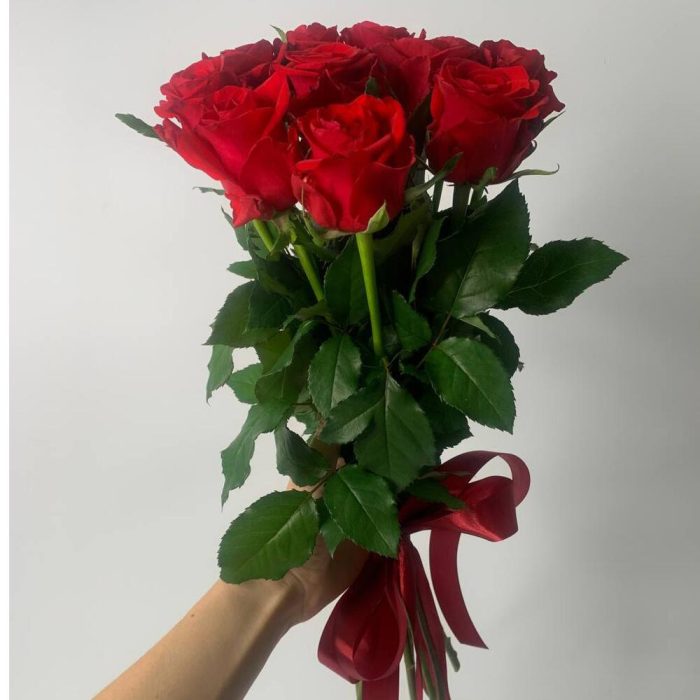 9 червоних троянд під стрічку