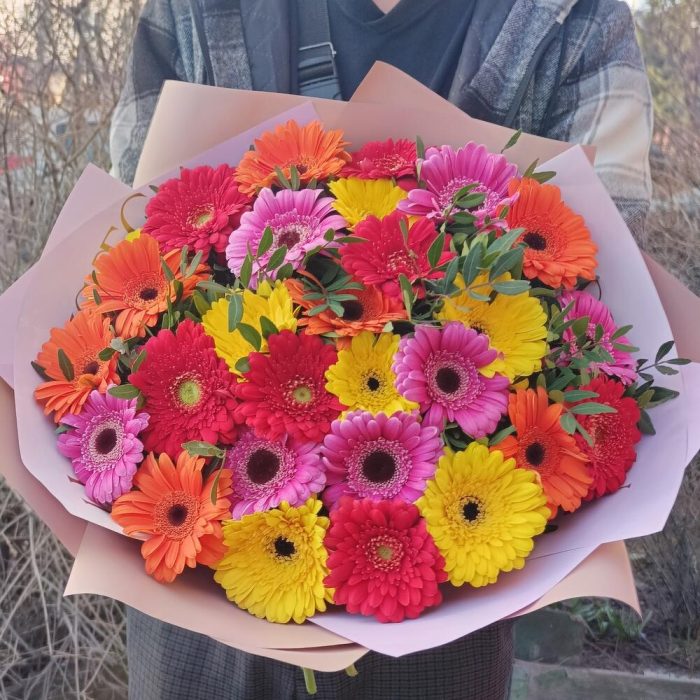 Букет из 25 разноцветных гербер