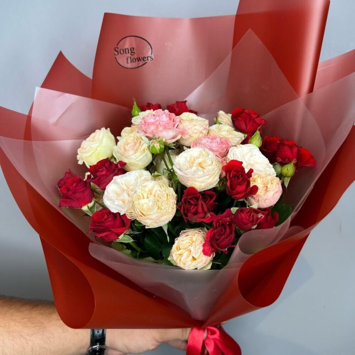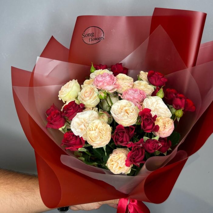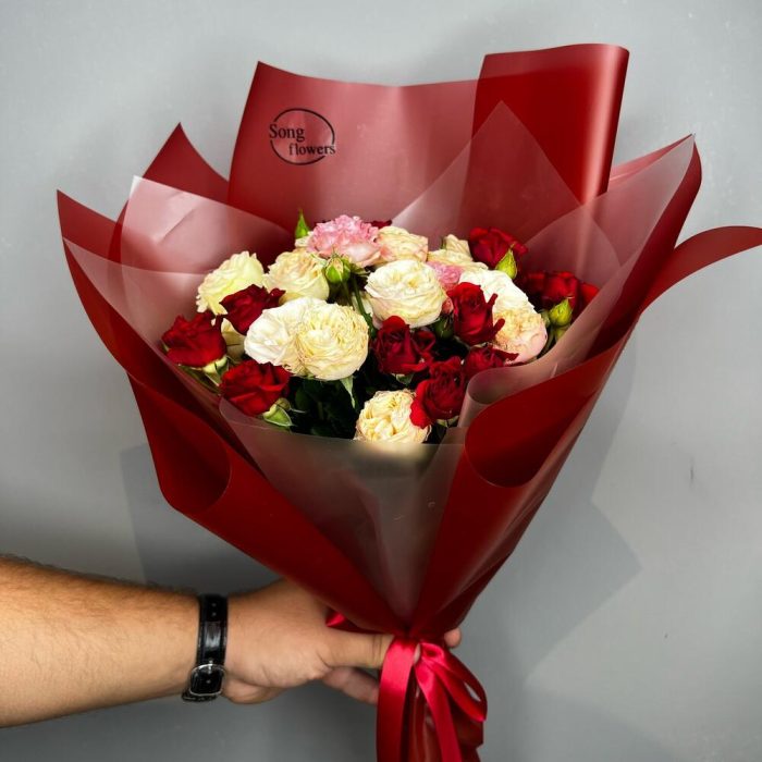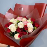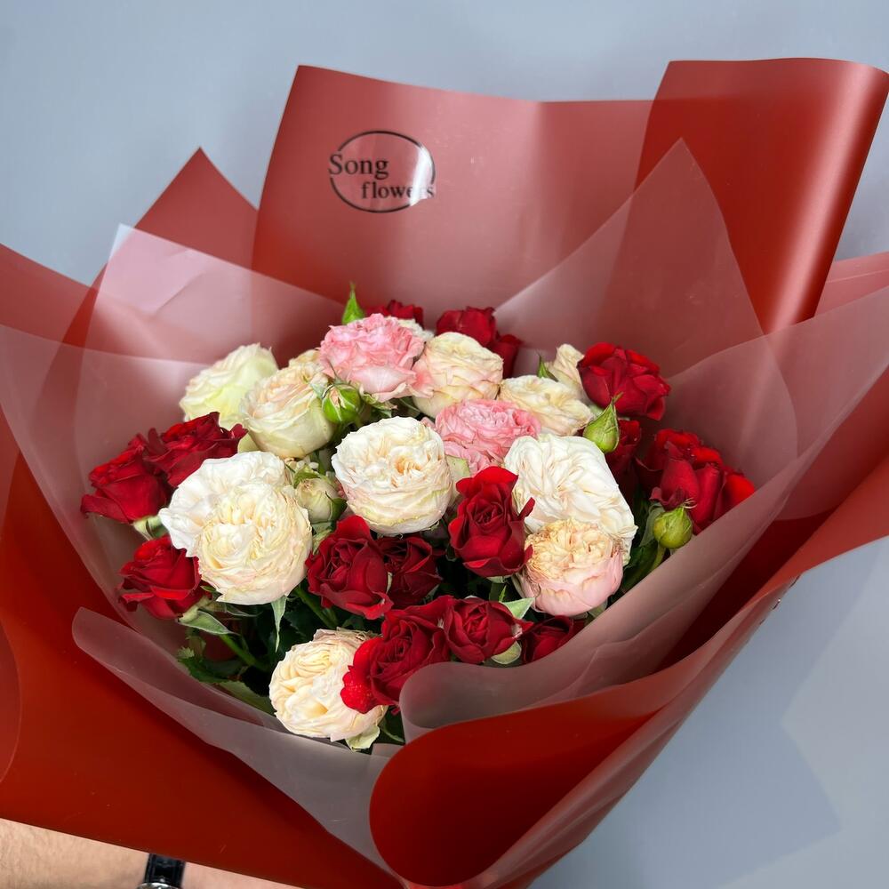 Гвоздики, Кустовые розы, Пионовидные розы, Розы
