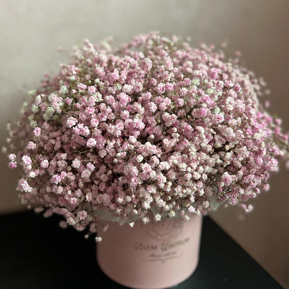 Большая коробка из бело-розовых гипсофил