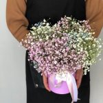 “Сиреневый туман” – композиция из гипсофилы в шляпной коробке
