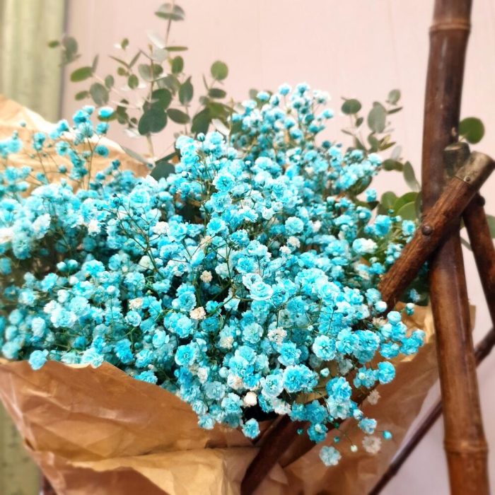 Гипсофила – 11 шт.Эвкалипт – 5 шт.Лента атласная – 1 шт.Открыточка с вашими пожеланиями – 1 шт.любовь флориста (бесплатно) – 1 шт.крафт жатый упаковка – 1 шт.