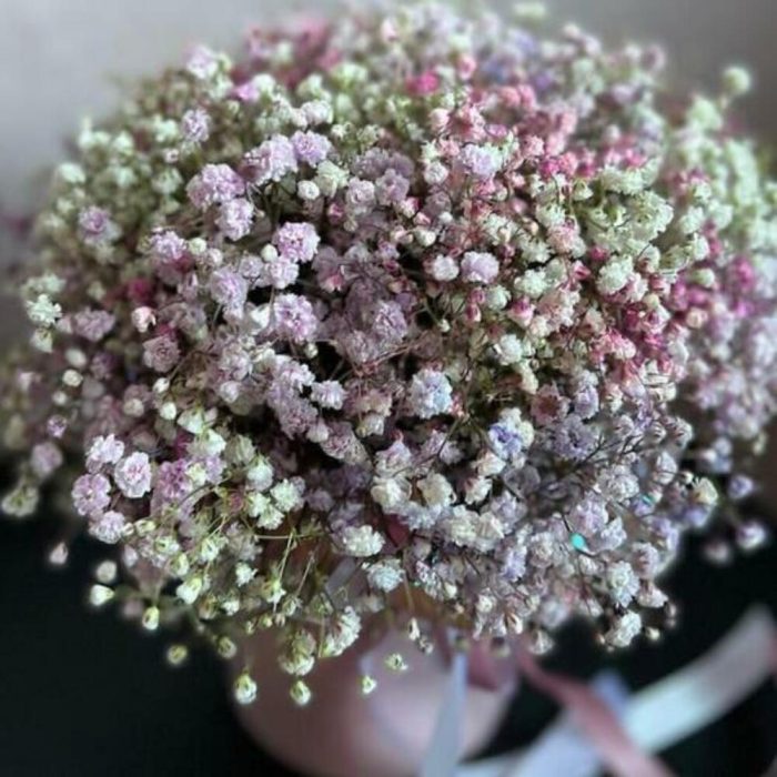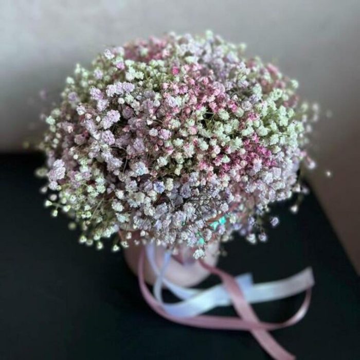 Гипсофила – 7 шт.коробочка – 1 шт.Атласная лента – 1 шт.