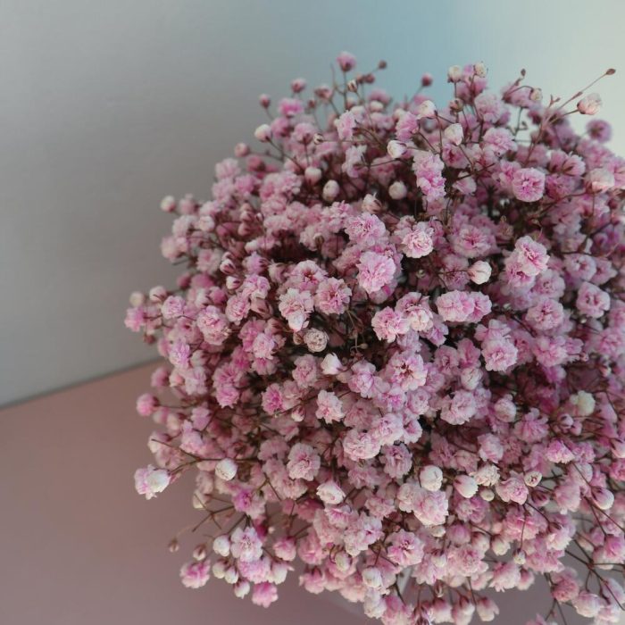 Гипсофила розовая – 4 шт.кашпо керамика ручной работы – 1 шт.Флористическая губка (оазис) – 1 шт.Матовая пленка – 1 шт.