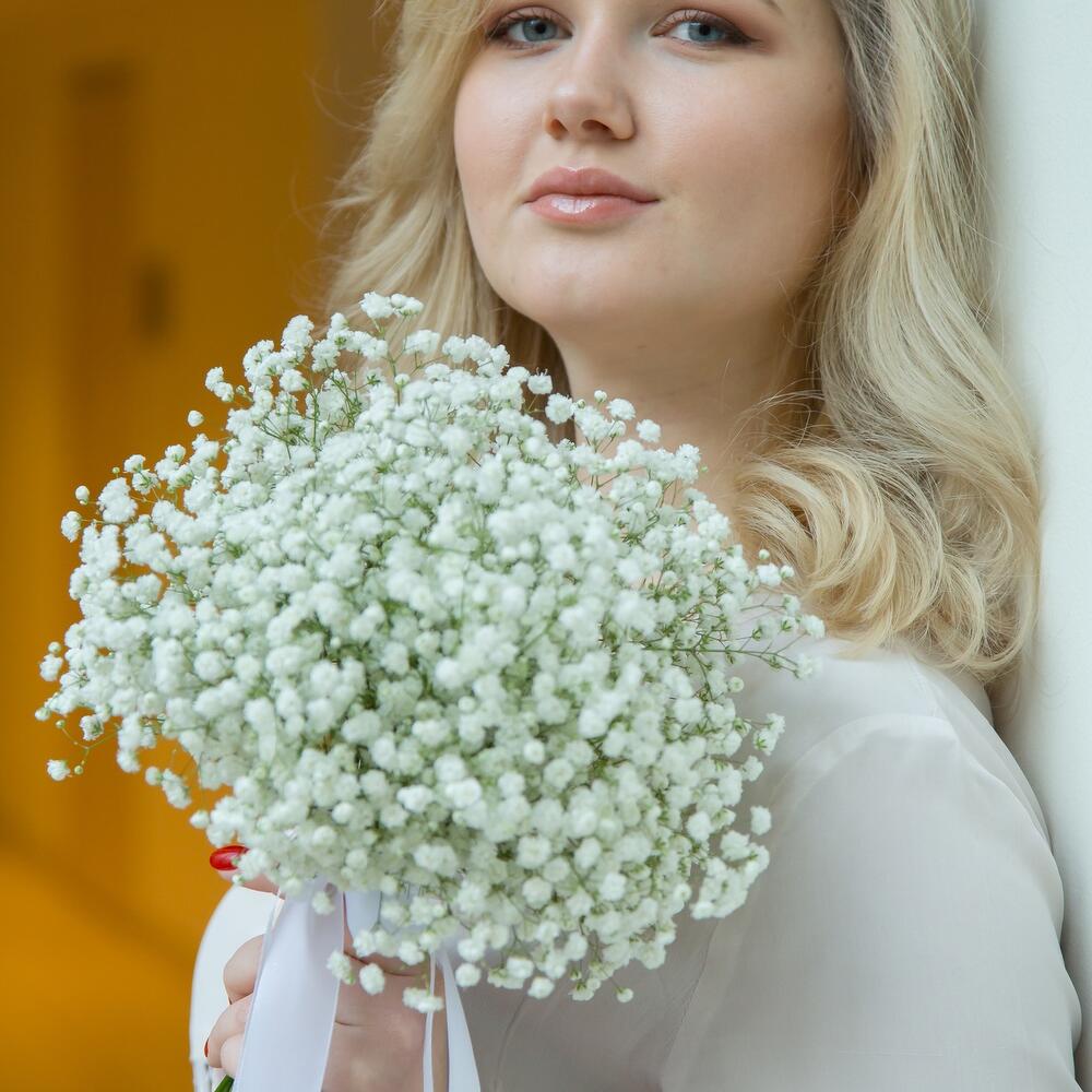 Гипсофила – 10 шт.Лента атласная – 1 шт.