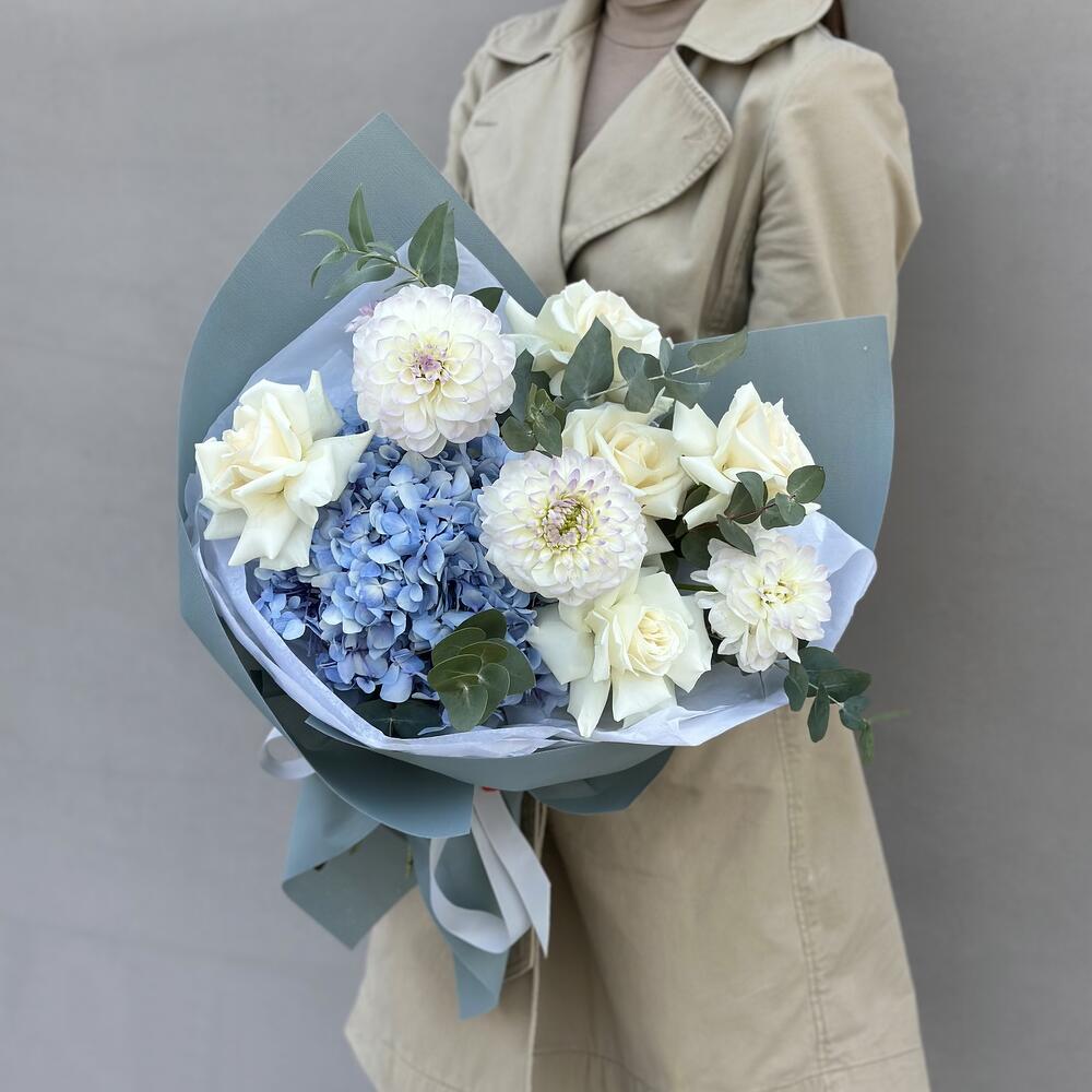 Изящный букет в небесной цветовой гамме.