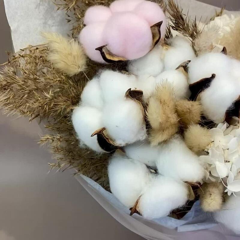 Хлопок – 13 шт.пампасная трава – 4 шт.гортензия стабилизированная – 1 шт.