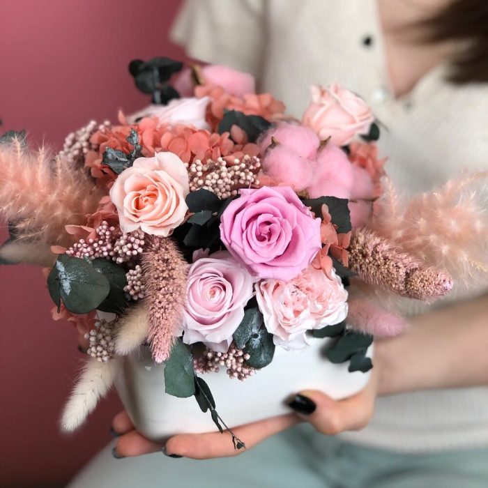 Стабилизированные цветы в шляпной коробке