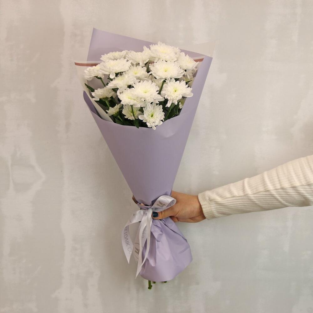 Букет из 3 белых кустовых хризантем в стильной упаковке