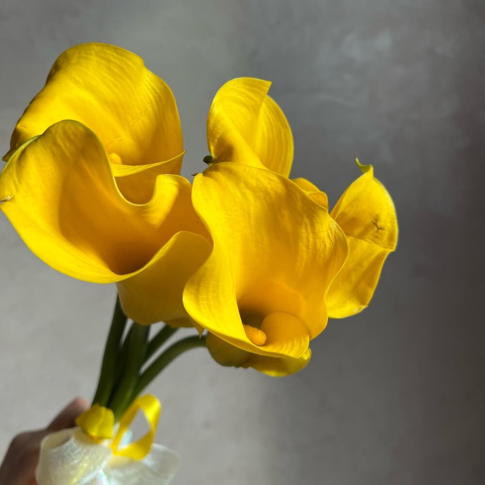 Атласная лента – 1 шт.каллы желтые – 5 шт.