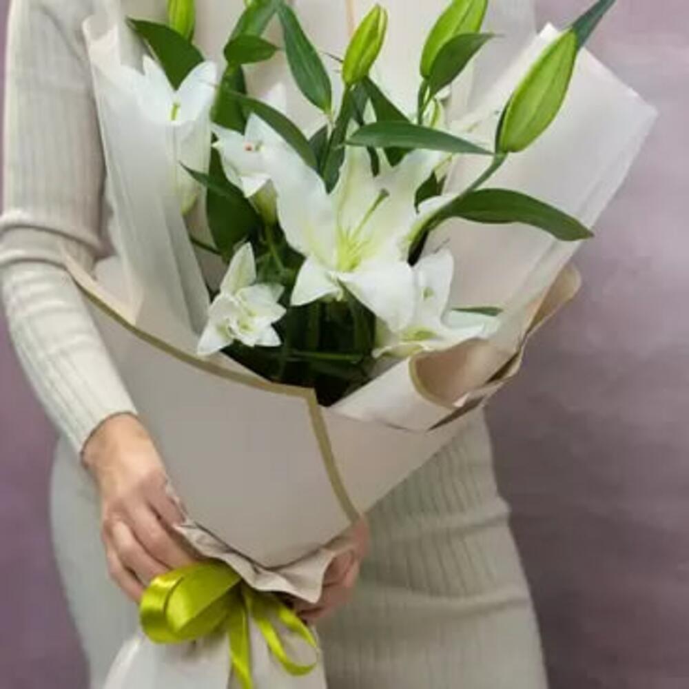 Лента – 1 шт.Пленка – 2 шт.Лилия белая – 3 шт.