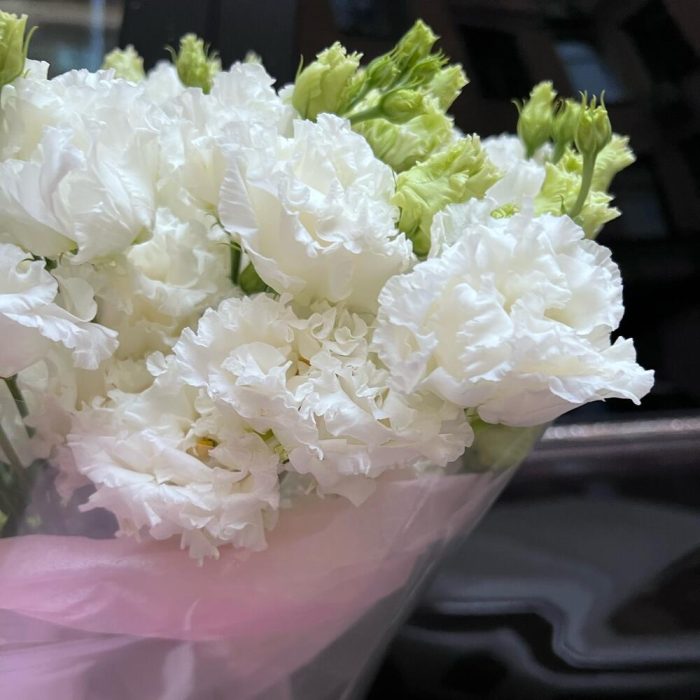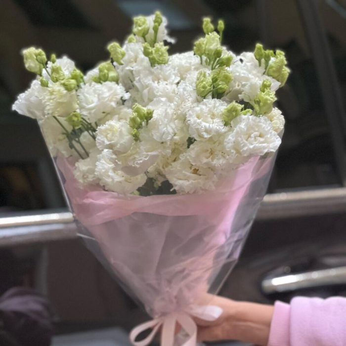 Нежный букет эустомы, в легкой почти прозрачной упаковке, чтоб все внимание получателя было только на цветок.Сортов эустомы или ещё одно название этого цветка лизиантус очень много, как и цветовой гаммы.Но именно этот самый нежный, каждый цветок хочется разглядывать и … Показать ещётрогать. Аромат у букета слегла заметный, напоминает аромат свежести. Достаточно стойкий и живучий цветок.