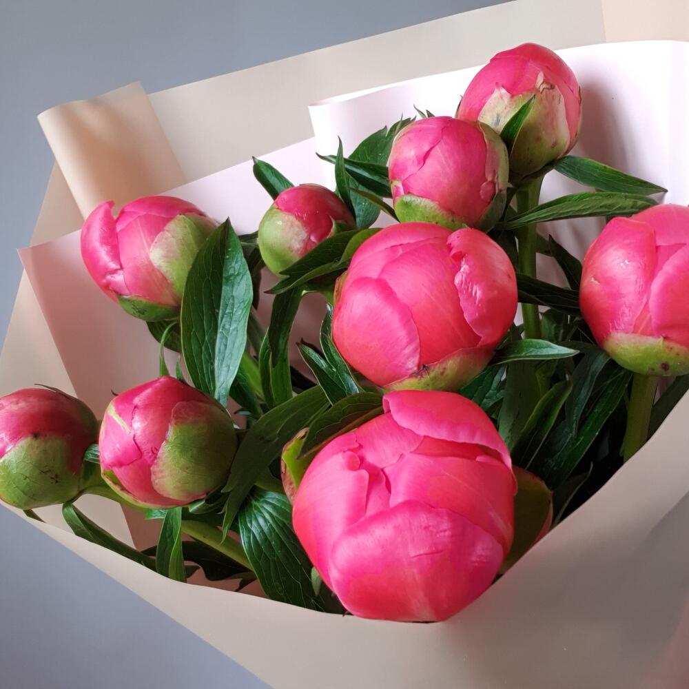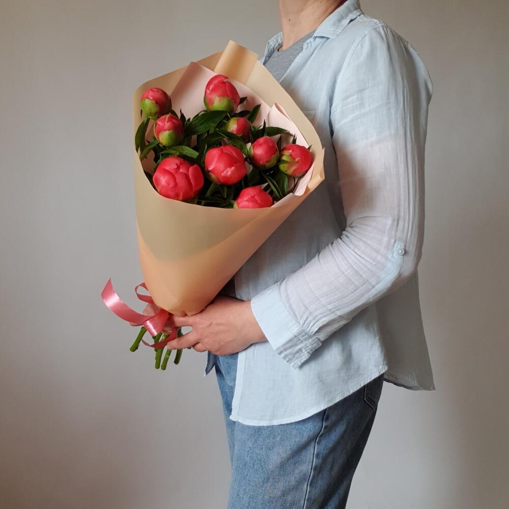 Упаковка – 1 шт.Лента атласная – 1 шт.Пион коралловый – 9 шт.