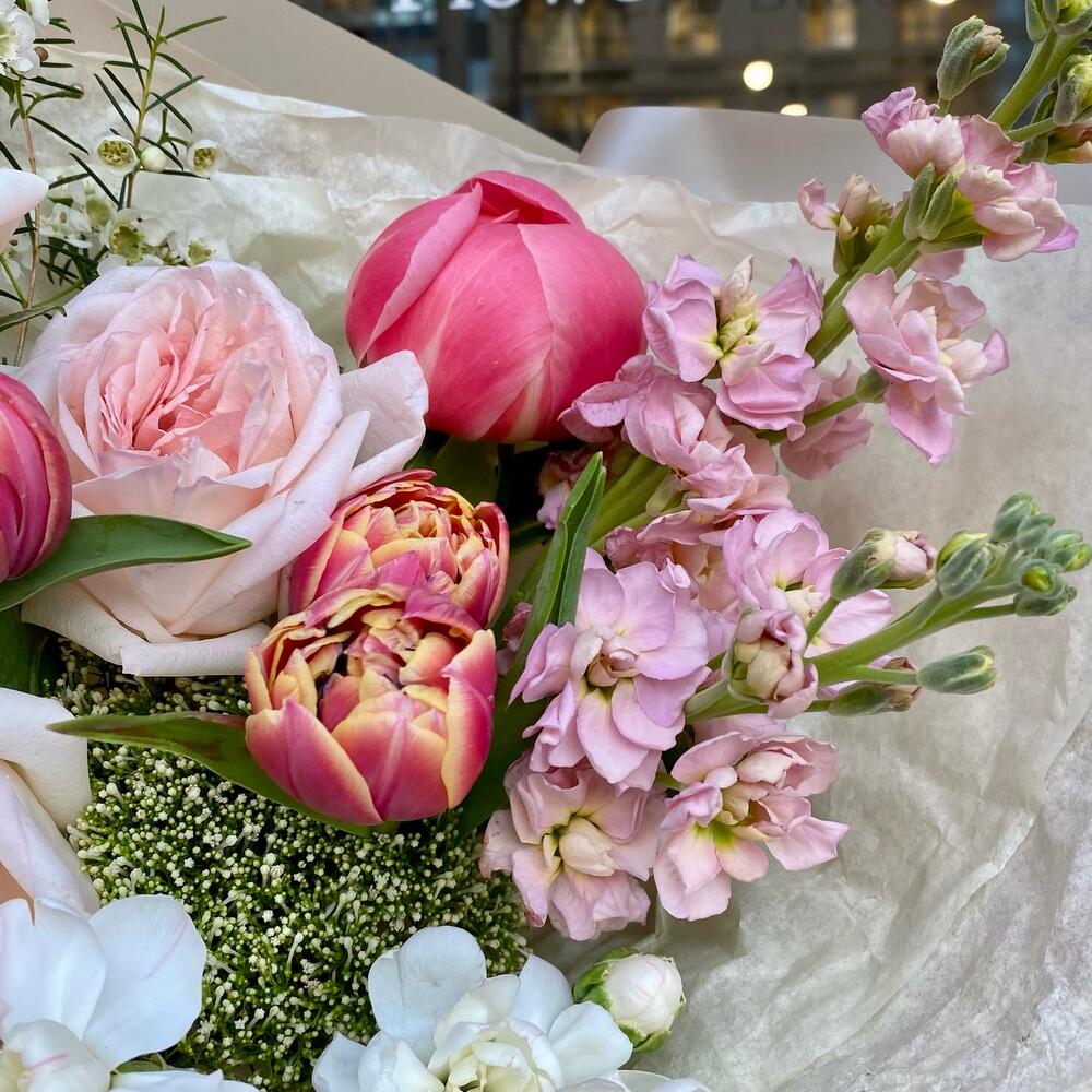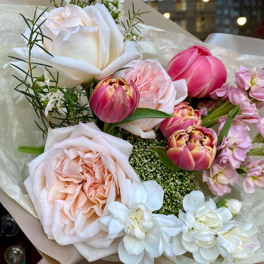 Категорий: Гвоздики, Кустовые розы, Пионовидные розы, Розы, Тюльпаны