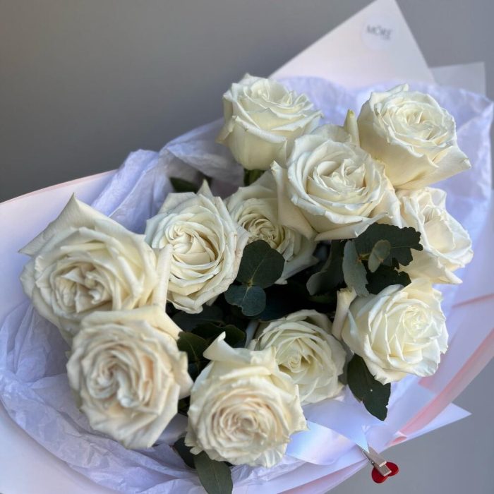 Эвкалипт – 2 шт.роза плая бланка – 11 шт.