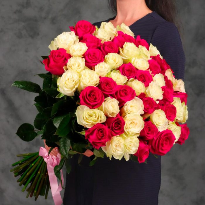 Букет 55 белых и розовых роз