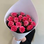 Роза – 15 шт.Лента атласная – 1 шт.Упаковка дизайнерская – 1 шт.