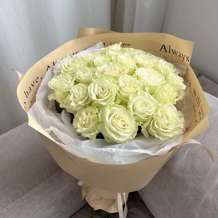 Роза Мондиаль – 23 шт.Тишью белое – 1 шт.пленка матовая дизайнерская – 1 шт.
