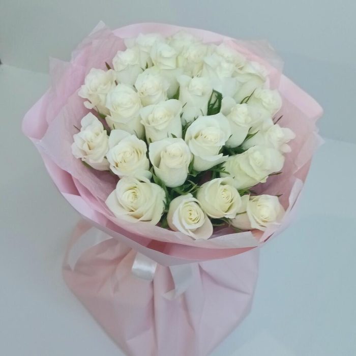 Букет из 25 роз белых в розовом