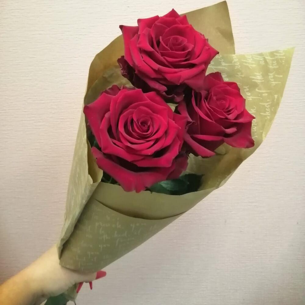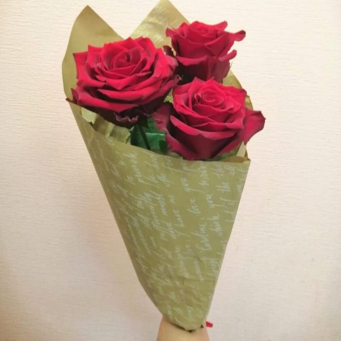Лента – 1 шт.Упаковка – 1 шт.Роза Эквадор 60 см – 3 шт.