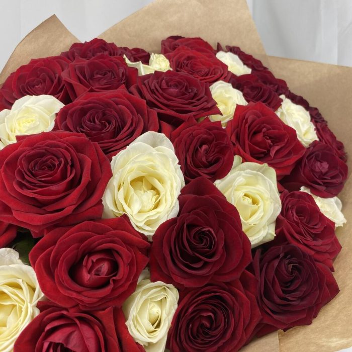Букет из 35 красных и белых роз