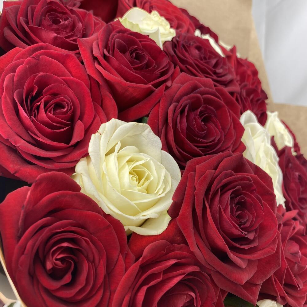 Красная роза – 25 шт.белая роза – 10 шт.