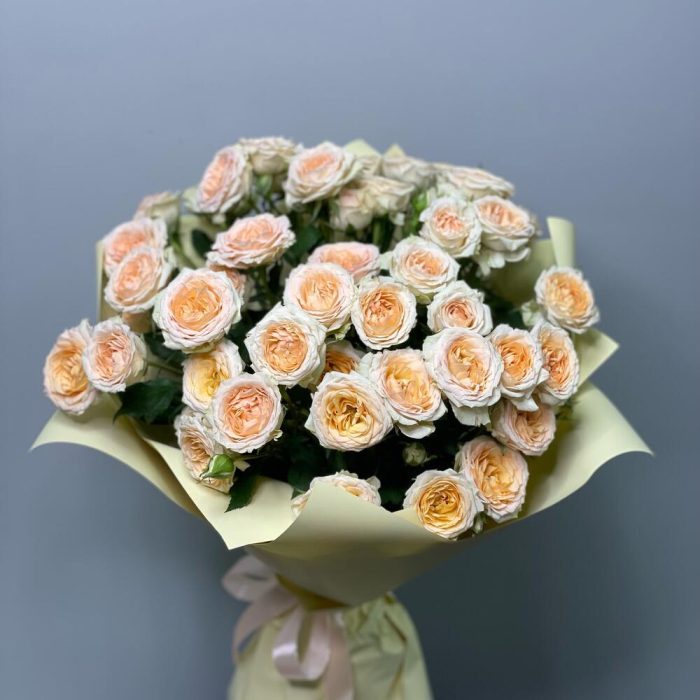 Лента – 1 шт.Роза кустовая – 7 шт.Оформление – 3 шт.