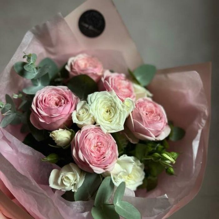 Букет из пионовидных роз с эвкалиптом