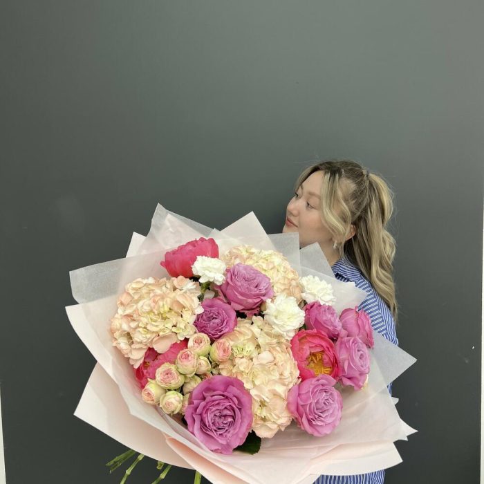 Гвоздики, Кустовые розы, Пионовидные розы, Розы