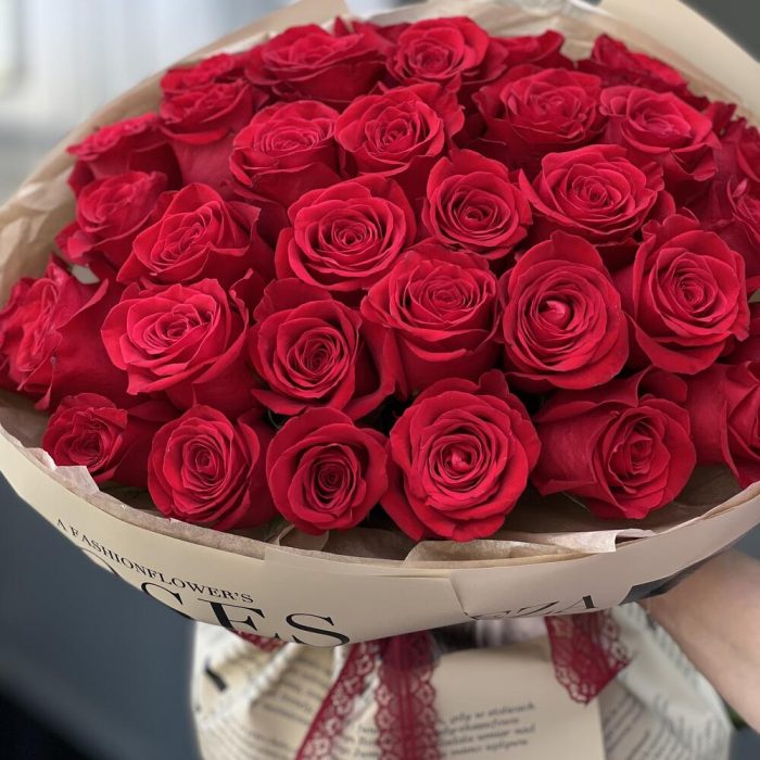 Красная роза – 35 шт. Оформление – 1 шт.