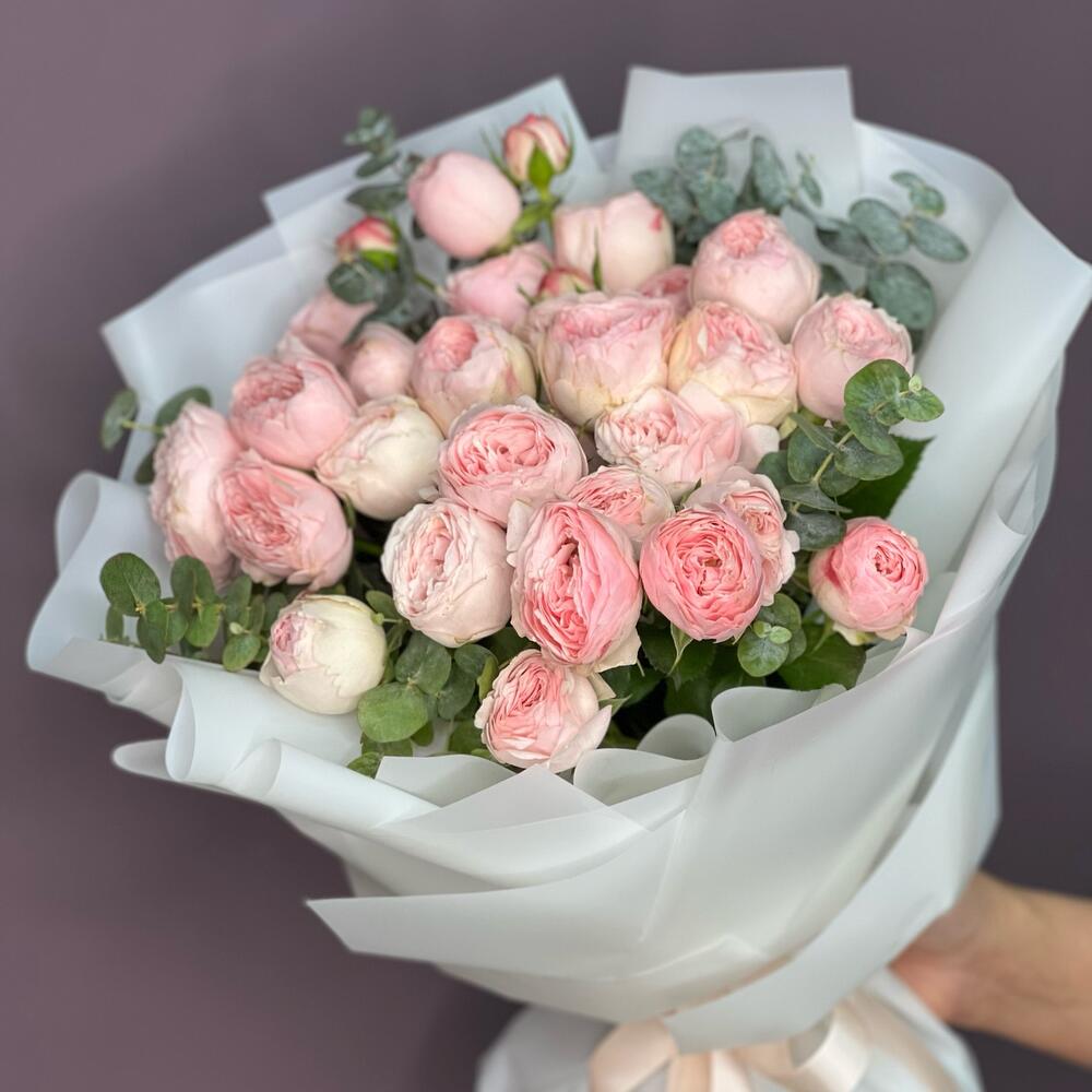 Гвоздики, Кустовые розы, Пионовидные розы, Розы