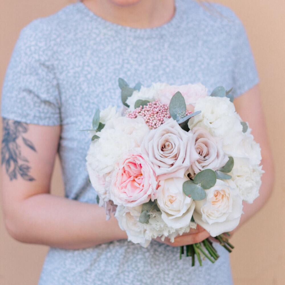 “Эвкалиптическая роскошь” гортензия и пионовидная кустовая роза
