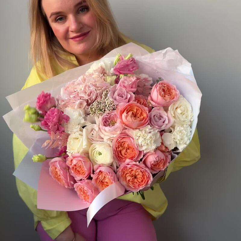 Категорий: Гвоздики, Гортензии, Лизиантусы, Пионовидные розы, Розы