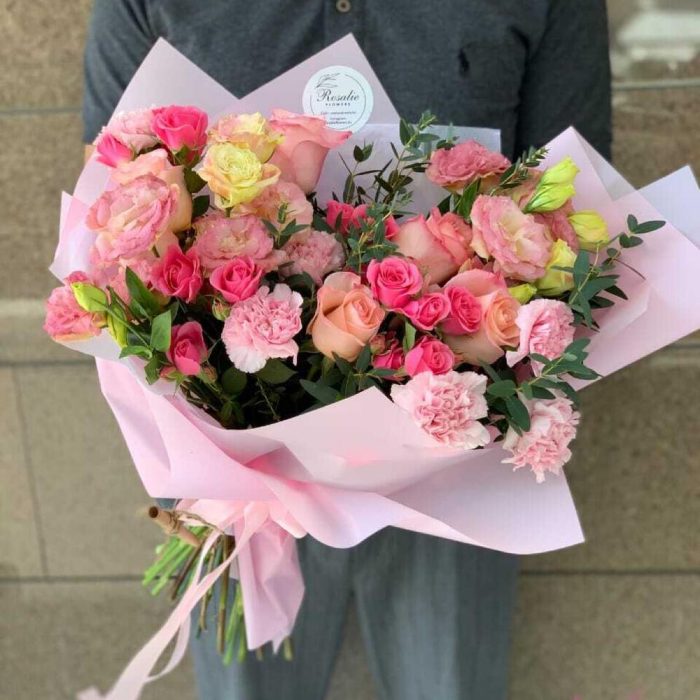 Гвоздики, Лизиантусы, Розы
