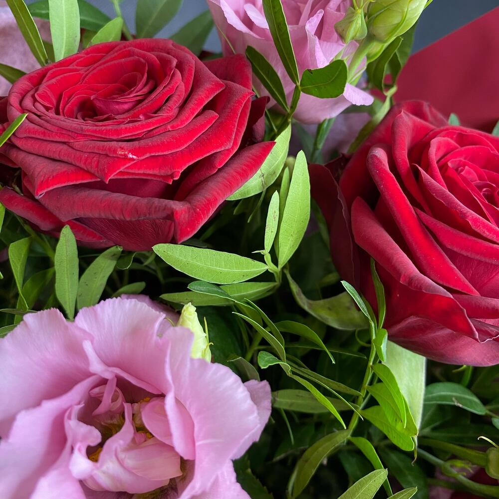 Букет роз с лизиантусом