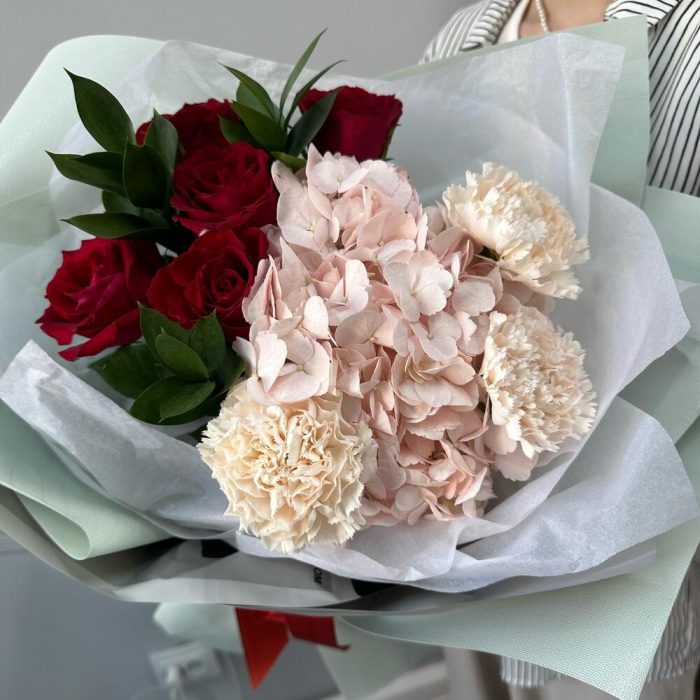 Гвоздики, Кустовые розы, Лизиантусы, Пионовидные розы, Розы