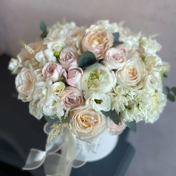 Альстромерии, Гвоздики, Кустовые розы, Лизиантусы, Розы, Хризантемы