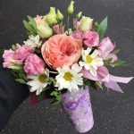 Комплимент из свежих цветов в дизайнерском стакане