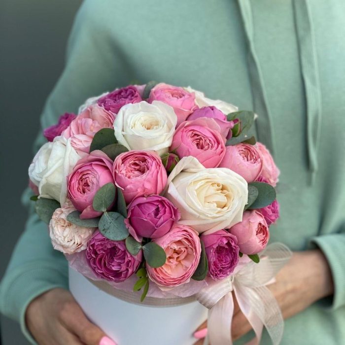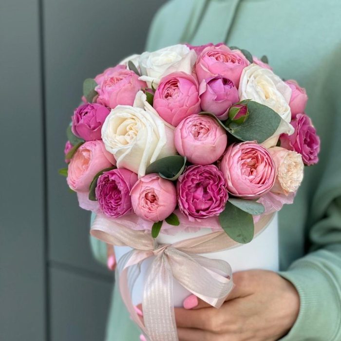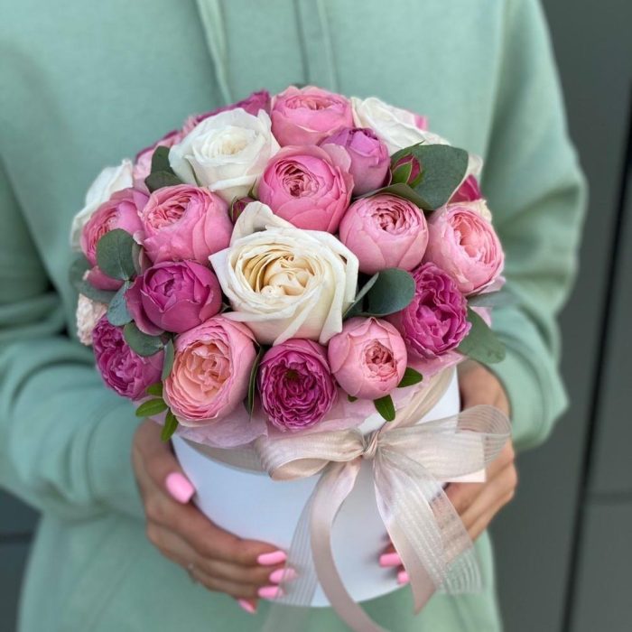 “В твоих глазах”: нежная шляпная коробка с французскими розами
