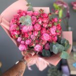Кустовая роза – 19 шт. Атласная лента – 1 шт. Упаковка дизайнерская – 3 шт. Открыточка с вашими пожеланиями – 1 шт.