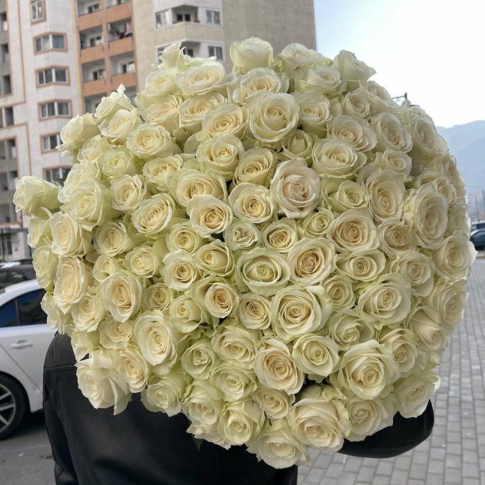 Метки: 101 роза, Белые розы, от 5000 руб, Роза 70 см