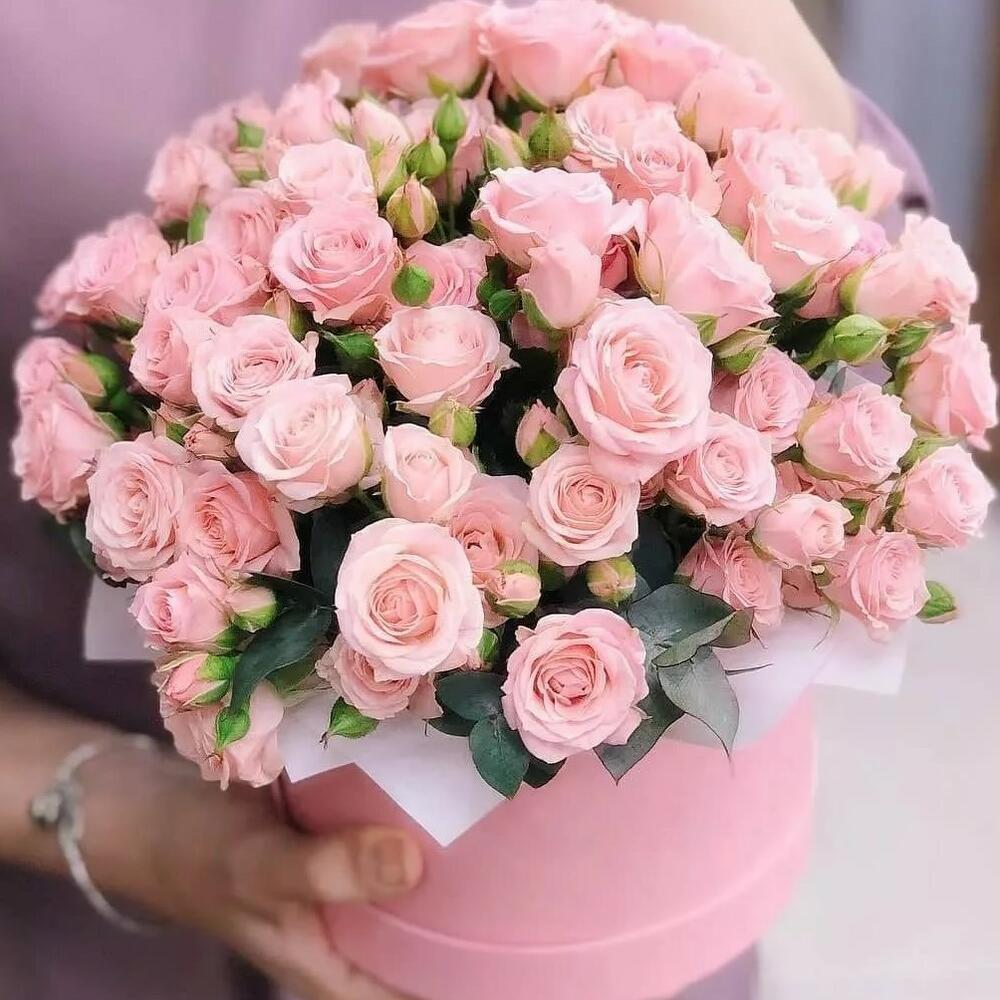 Оазис – 1 шт.Шляпная коробка – 1 шт.кустовая роза 70 см – 15 шт.