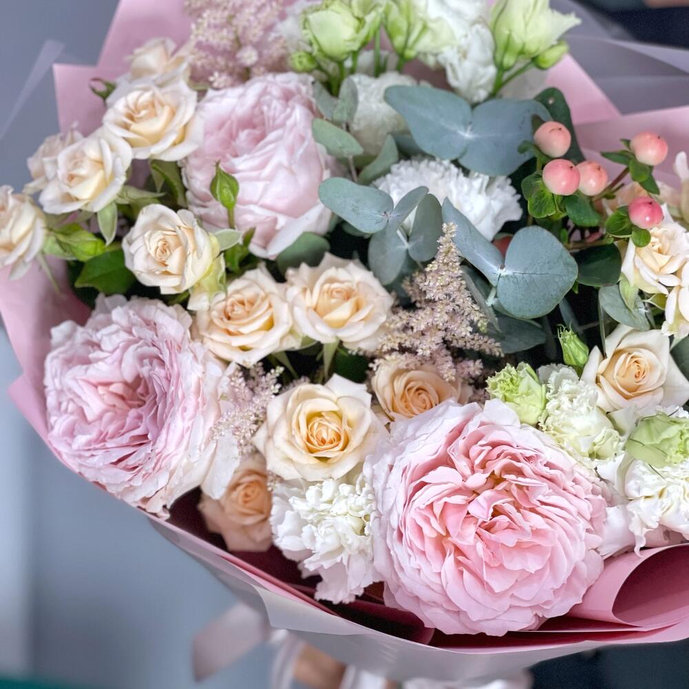 Нежный букет с пионовидными розами