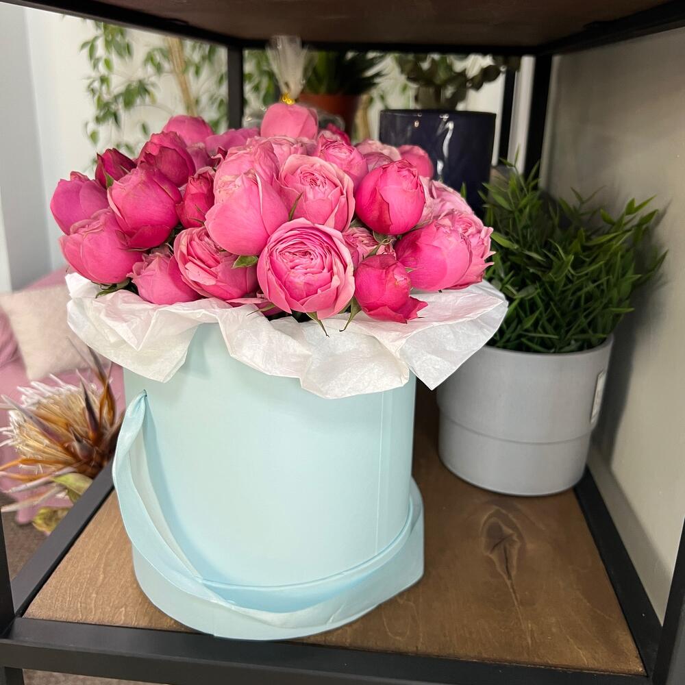 Пионовидная роза кустовая в шляпной коробке ( шляпная коробка может отличаться по цвету – белая, розовая, голубая, сиреневая).Необычные и такие завораживающие пионовидные розы в шляпной коробке! Такая композиция не только очаровательный подарок, который останется в сердце у каждой обладательнице, но и удобный ведь его можно сразу же куда-нибудь поставить.Silvia pink – шикарная кустовая пионовидная роза, по приятной и вкусной цене – нет аналогов этому предложению и не будет. И нет аналогов этому сорту. Эксклюзивная Роза премиум класса.Кустовая пионовидная Роза , сорт Silvia Pink, цвет : розовый.Высота : 40-50 см, лёгкий аромат.Кол-во цветков на стебле: 3-5 шт.Устойчивость к жаре : низкаяВесь цветок свежий, проходит контроль качества.