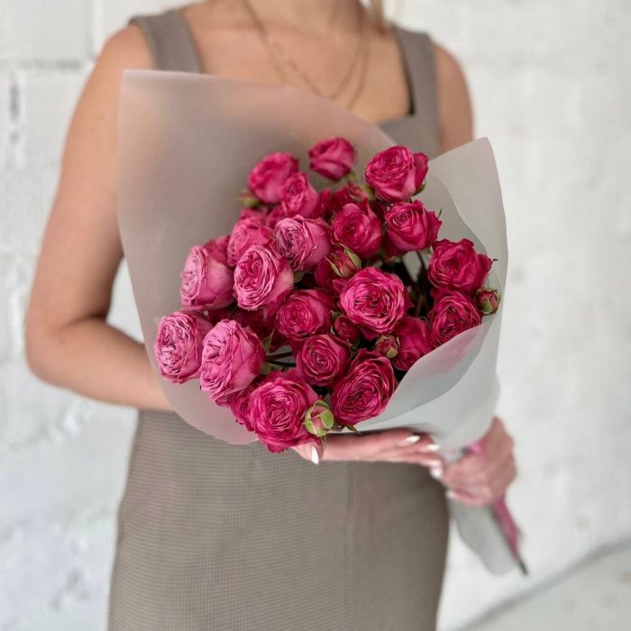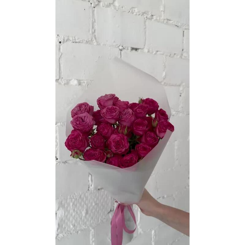 Роскошные пионовидные кустовые розы в дизайнерской упаковке