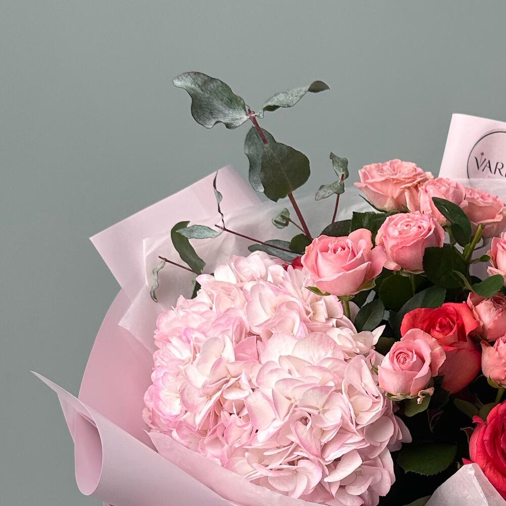 Гортензии, Кустовые розы, Лизиантусы, Пионовидные розы, Розы