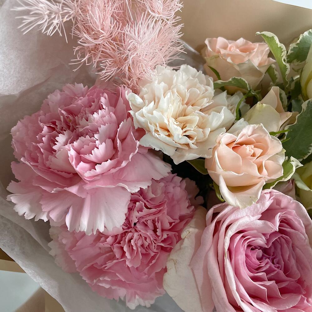Гвоздики, Кустовые розы, Лизиантусы, Пионовидные розы, Розы