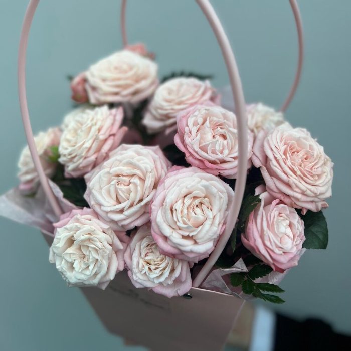 Роза кустовая Бомбастик – 4 шт.Тишью – 2 шт.Оазис флористический – 1 шт.сумочка с ручками – 1 шт.