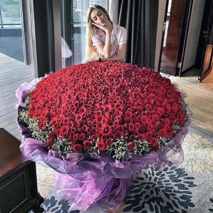 Упаковка дизайнерская – 1 шт. Открыточка с вашими пожеланиями – 1 шт. розы эквадор – 1001 шт. шиколад – 1 шт.
