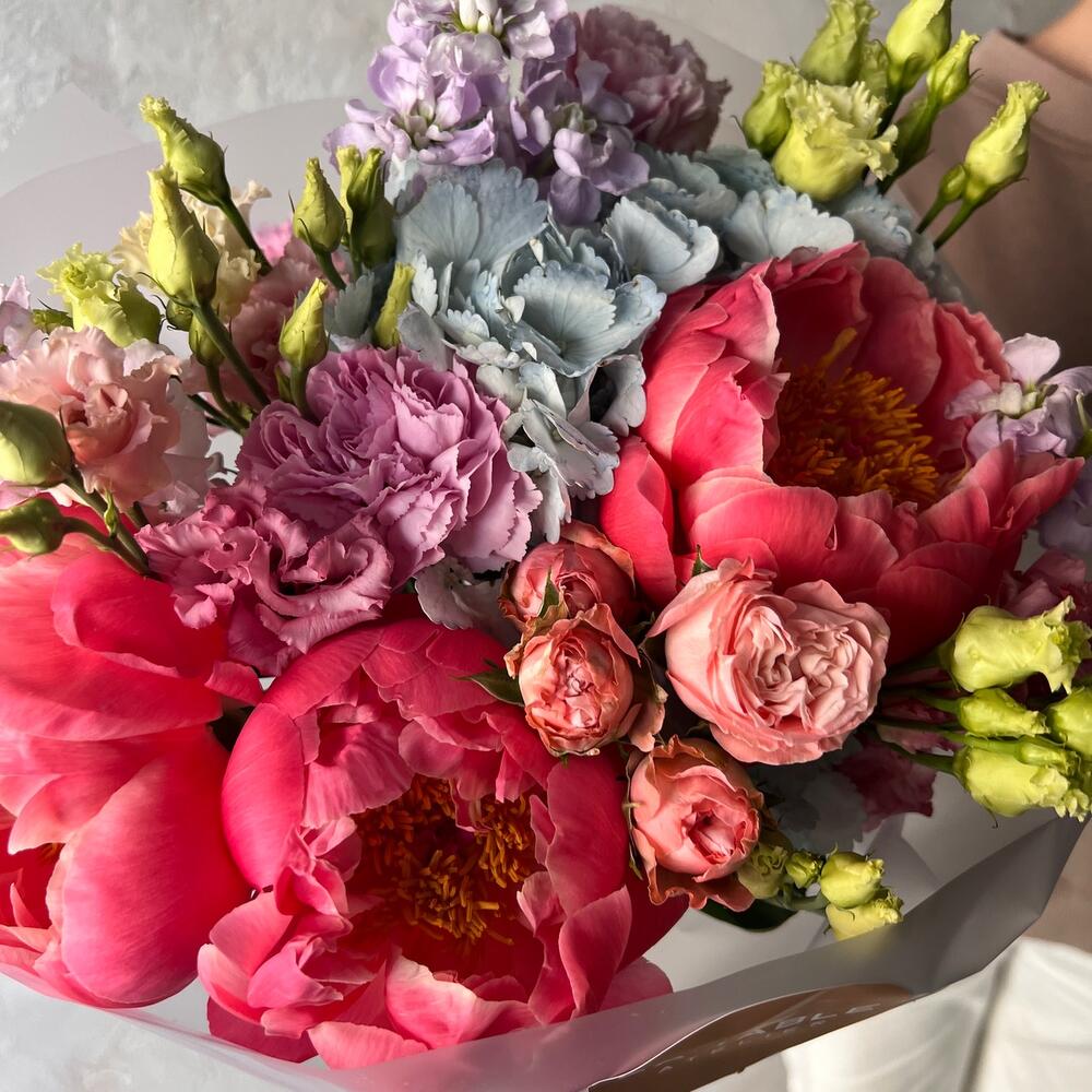 Категорий: Гвоздики, Гортензии, Кустовые розы, Лизиантусы, Пионы, Розы